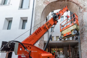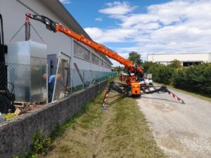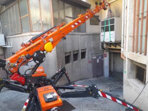 Minigru ruotate/cingolate, con alimentazione termica/elettrica/batteria per servizio di carico/scarico, movimentazione e posizionamento di precisione in spazi di difficile accesso per pesi e ingombri. Utilizzabili anche in terreni dissestati.