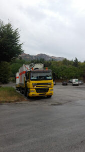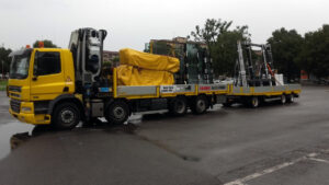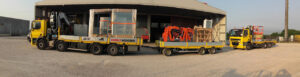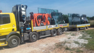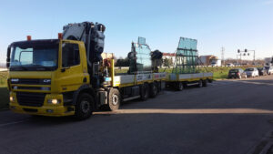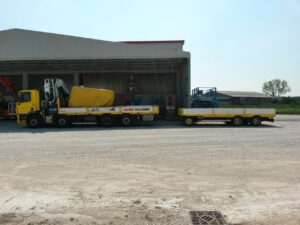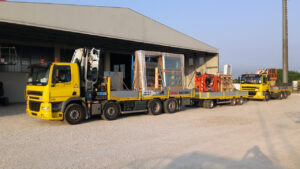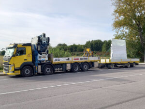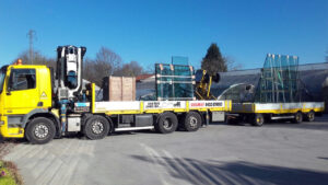 Servizio di trasporto con motrice e rimorchio ribassato per trasporto conto terzi di materiale particolarmente ingombrante in altezza.