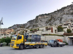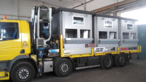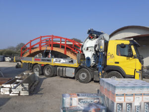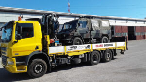 Trasportiamo mediante motrici 2/3/4 assi allestiti con/senza gru e rampa per il carico di mezzi semoventi su ruote o cingoli in tutta Italia e all'Estero.